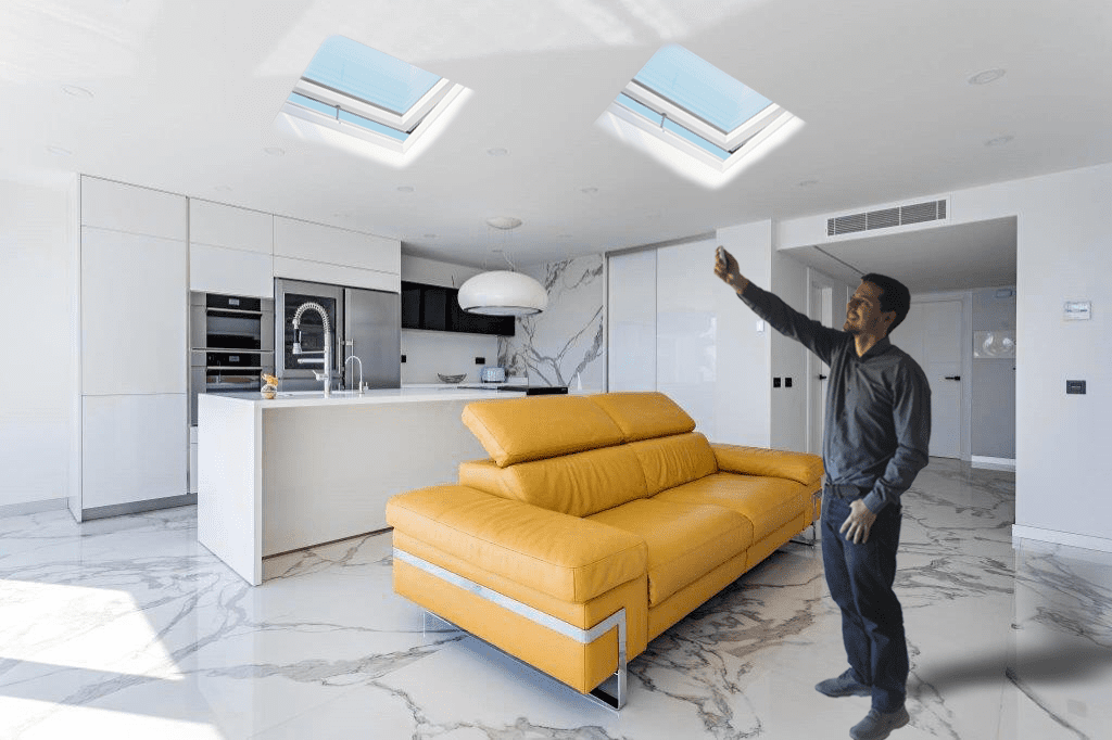 Sistema de apertura equipado con uno o dos amortiguadores, que unen el marco con bisagras al zócalo. El número y la potencia de los amortiguadores se dimensionan en función del tamaño y peso de la claraboya.